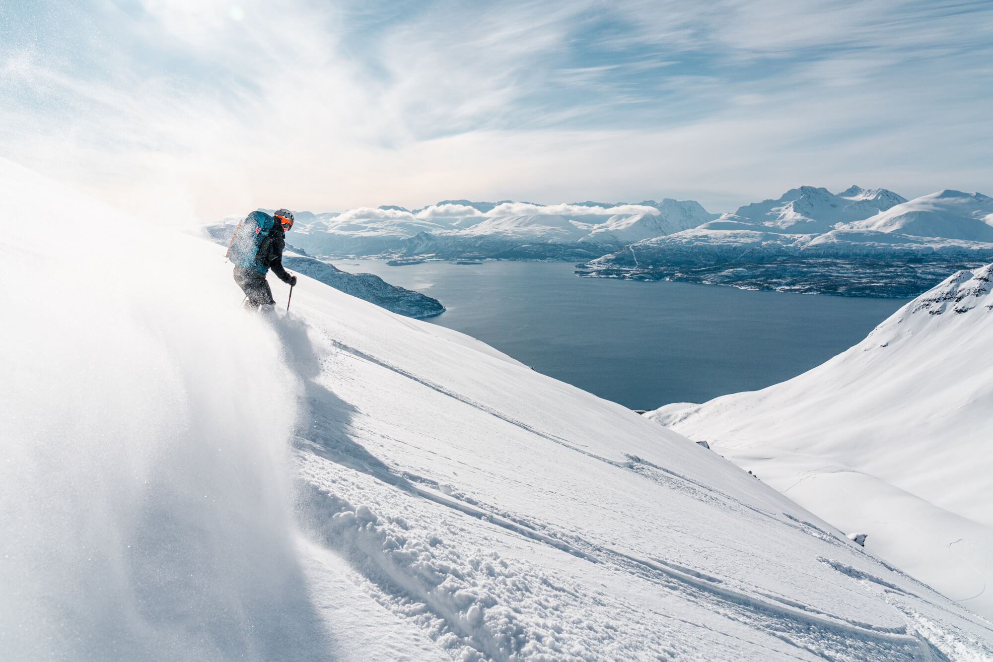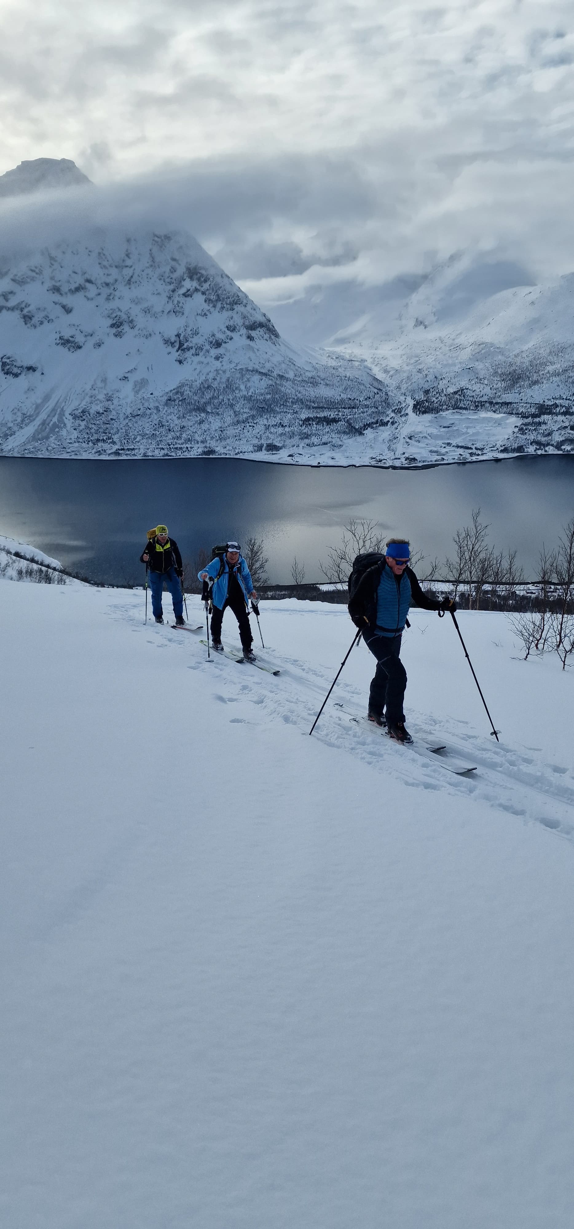 Während dieser Reise haben Sie die Möglichkeit, Gipfel wie den Rornestinden (1.041 m) zu erklimmen, der für seine gleichmäßigen, freien Hänge und den beeindruckenden Blick auf den Fjord bekannt ist. Die Abfahrten führen oft direkt bis ans Ufer des türkis schimmernden Meeresarms, was das Erlebnis besonders macht. Da alle Touren stark wetter- und schneebedingt geplant werden, ist Flexibilität vor Ort unerlässlich. Tagesaktuell entscheidet Ihr Guide – unter Berücksichtigung der Sicherheit, der Bedingungen und der Gruppenzusammensetzung – über die optimale Route. Die Touren werden individuell an die Fähigkeiten der Teilnehmer angepasst, sodass sowohl erfahrene Skitourengeher als auch ambitionierte Einsteiger auf ihre Kosten kommen. Die Aufstiege variieren zwischen 900 und 1.400 Höhenmetern und dauern in der Regel bis zu vier Stunden. Dank der niedrigen Seehöhe dieser Region sind die Touren weniger anstrengend als vergleichbare Unternehmungen in höheren Gebirgen.