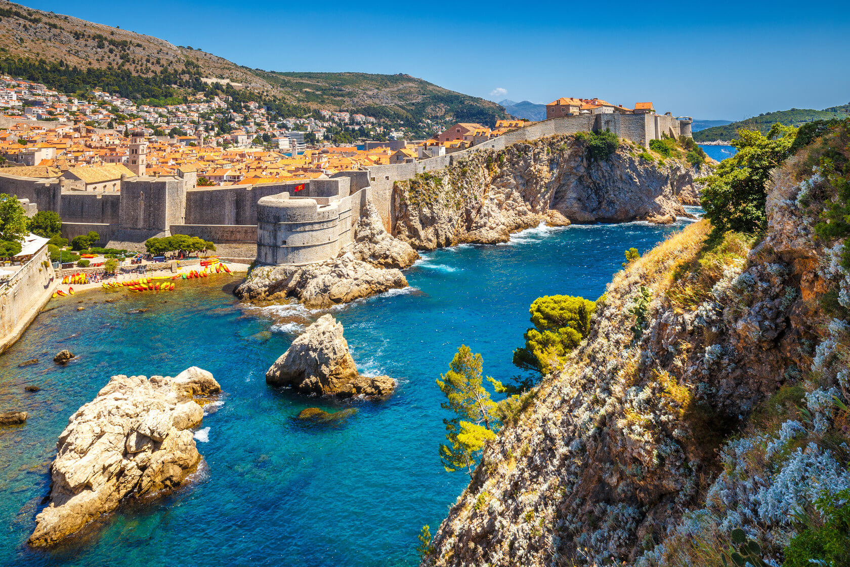 Nicht umsonst wird Dubrovnik auch die „Perle der Adria” genannt. Die malerische Altstadt mit ihren zahlreichen Kulturdenkmälern und wunderschönen Bauten machen Sie zu einem der beliebtesten Touristenziele weltweit. Jedes Kreuzfahrtschiff macht hier Station, um die sich am Fußdes Srd-Berges erhebende Stadt mit ihren mächtigen Mauern und Bastionen zu erforschen. B