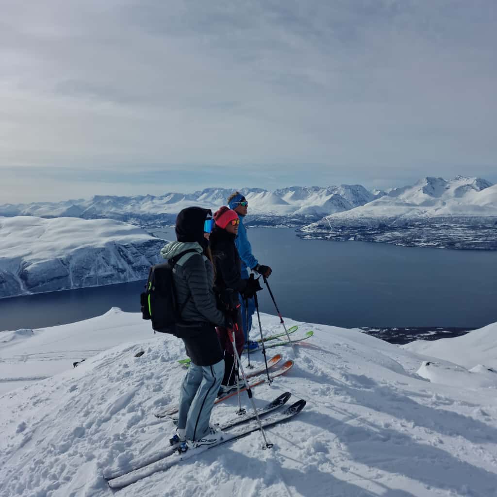 Während dieser Reise haben Sie die Möglichkeit, Gipfel wie den Rornestinden (1.041 m) zu erklimmen, der für seine gleichmäßigen, freien Hänge und den beeindruckenden Blick auf den Fjord bekannt ist. Die Abfahrten führen oft direkt bis ans Ufer des türkis schimmernden Meeresarms, was das Erlebnis besonders macht. Da alle Touren stark wetter- und schneebedingt geplant werden, ist Flexibilität vor Ort unerlässlich. Tagesaktuell entscheidet Ihr Guide – unter Berücksichtigung der Sicherheit, der Bedingungen und der Gruppenzusammensetzung – über die optimale Route. Die Touren werden individuell an die Fähigkeiten der Teilnehmer angepasst, sodass sowohl erfahrene Skitourengeher als auch ambitionierte Einsteiger auf ihre Kosten kommen. Die Aufstiege variieren zwischen 900 und 1.400 Höhenmetern und dauern in der Regel bis zu vier Stunden. Dank der niedrigen Seehöhe dieser Region sind die Touren weniger anstrengend als vergleichbare Unternehmungen in höheren Gebirgen.